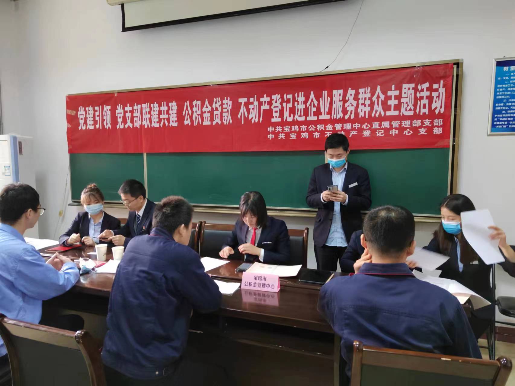 为深入贯彻落实省市“三个年”活动安排部署,持续优化营商环境,近日,宝鸡市住房公积金管理中心组织窗口工作人员,与市不动产登记中心一同走进陕西宝成实业有限责任公司,开展党建引领、支部联建共建主题活动暨政务服务“走出窗口、走进群众、服务到家”活动。
