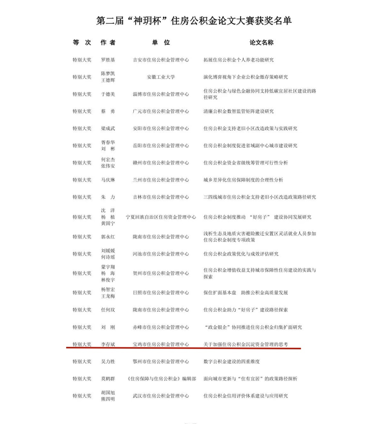 近日,住房公积金创新发展大会在河北雄安新区召开,会上举行第二届“神玥杯”全国住房公积金论文大赛颁奖仪式。我中心李存斌同志撰写的《关于加强住房公积金沉淀资金管理的思考》荣获特别大奖。